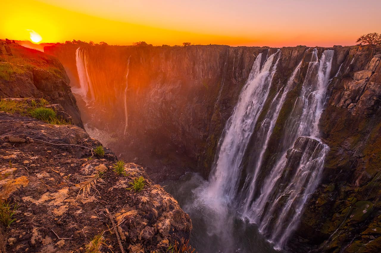 - Cataratas Vitória: Admire a grandiosidade das Cataratas Vitória, uma das Sete Maravilhas Naturais do Mundo, e embarque em um cruzeiro memorável no Rio Zambezi.